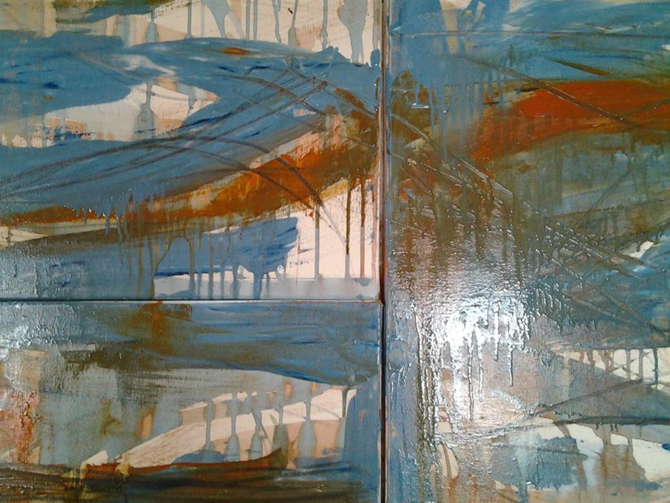 I am planning my next HUGE work, which will be about the same size, but made up of 6-9 canvases, the largest individual piece to be 80cm x 120 cm, the smallest, 50 cm sq