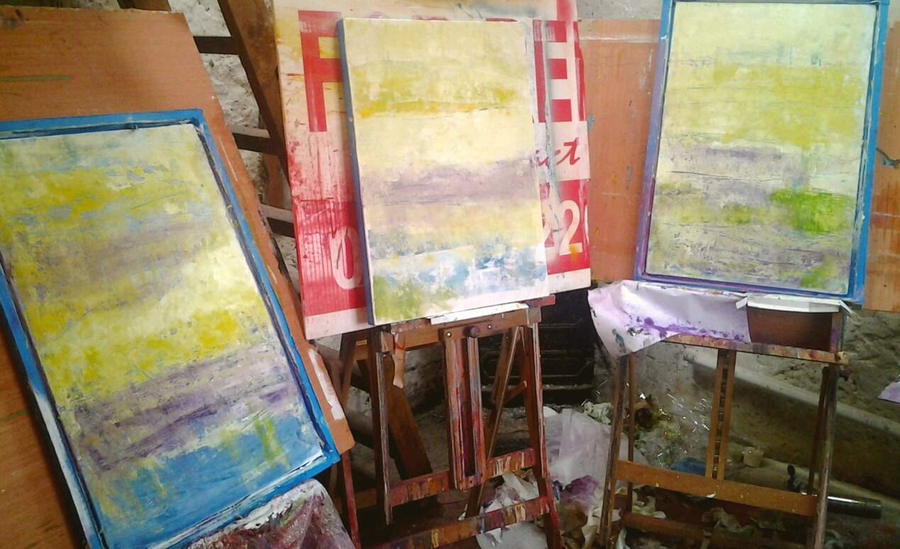 all 3 oil and cold wax medium on cradled wooden panels