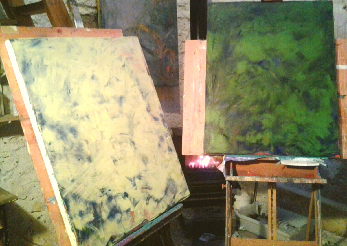 frustrated by confusing results with 2 square stones paintings, so decided to lay the foundations for 2 new big ones