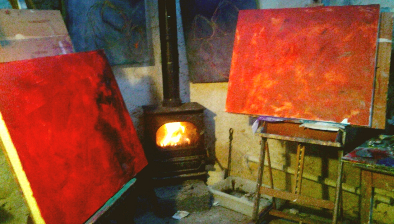 • they are never hanging close to a burning fire for long, because the fire is only lit for 2 or 3 hours a day and I move the paintings around. Definitely wouldnt be good to leave that close to a lit stove all day