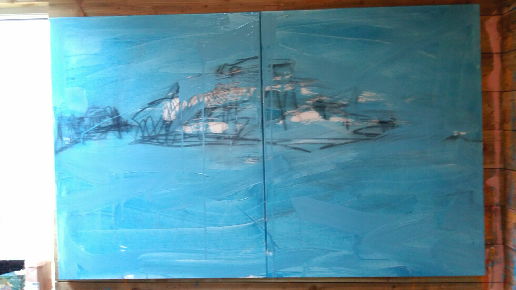 February 2, 2016 brooklyn History of a painting Photo collage Painting is about 100 x 160 cm On unstretched jute Posted in canvas, cold wax, colour, Donegal, doodles, methods, multiples / panoramas, painting 1 Comment