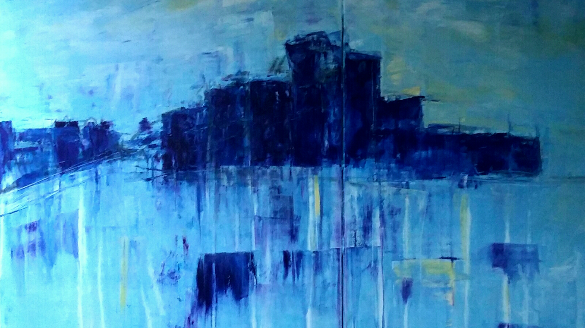 February 6, 2016 blue yellow 4 pieces each approximately 120cm x 60cm on unstretched coarse jute canvas Posted in canvas, cold wax, colour, multiples / panoramas, painting, studio Tagged Abstract art, Liz Doyle Leave a comment