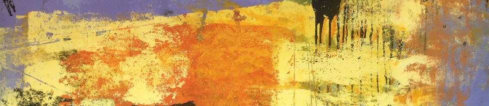 The large piece and the small ones are interconnected, both by my process (lifting areas of wet paint in tissue paper, from one work to another, in a type of printing), and also in subject. Although all the works are totally abstract, and as such have no actual subject or representational form, they all come from the idea and challenge that we all face, of the potential destruction of our beautiful environment. The shapes and forms, particularly in the small pieces, for me have echoes of sea and sky, rock and sand, light on water