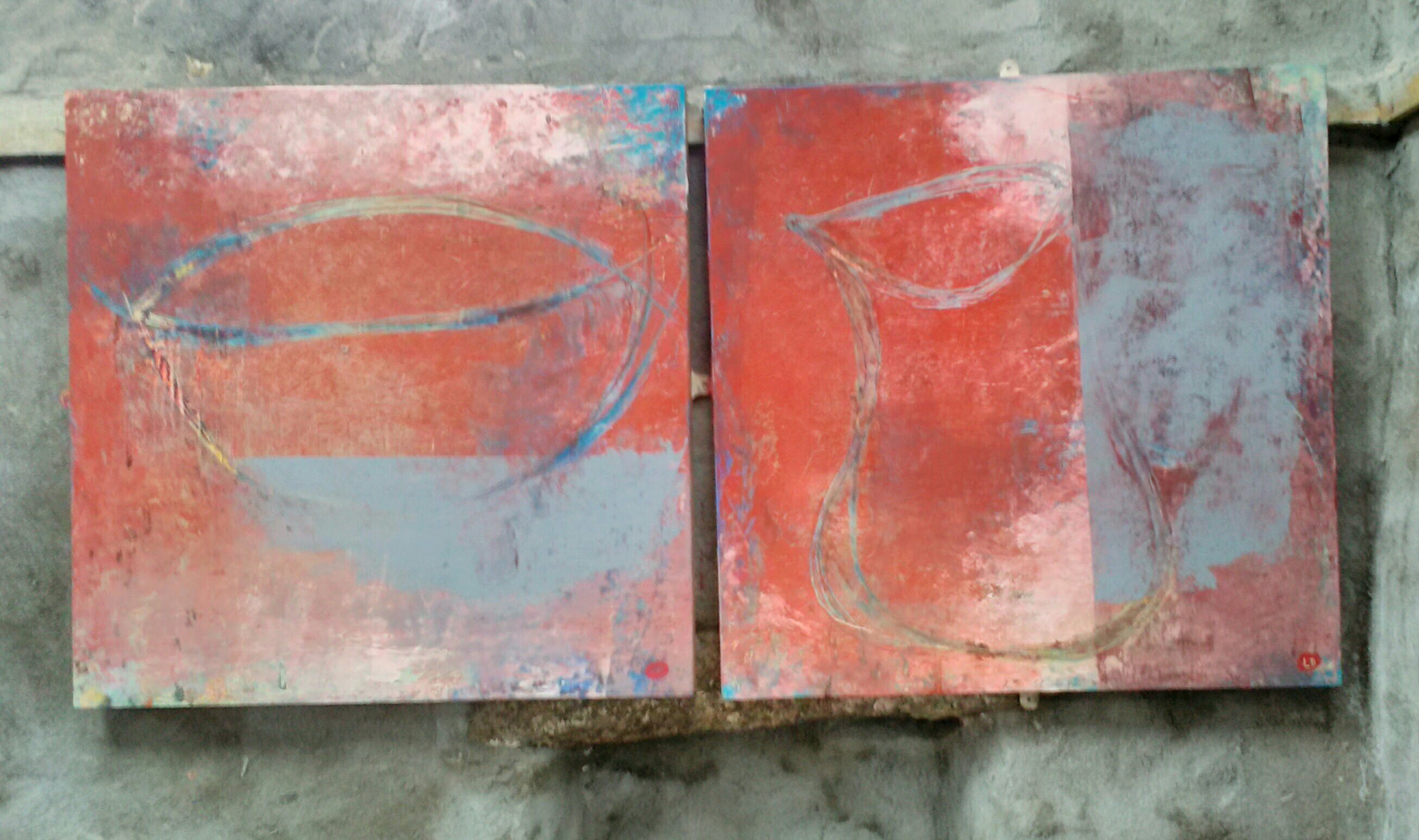 4 panels, untitled, each 70 x 50cm, in my studio, made in November