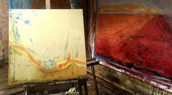 Working on my ‘Rock in the sea’ paintings in February