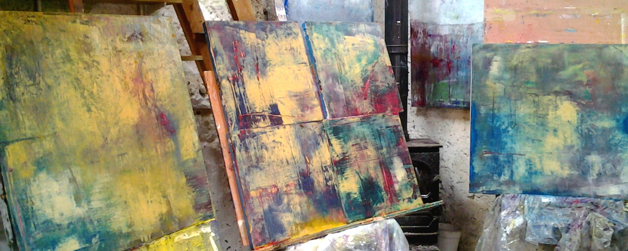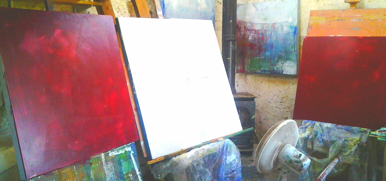 3 paintings in my studio this morning, stuck, frustrated, unresolved