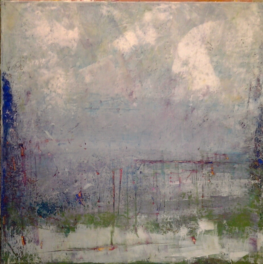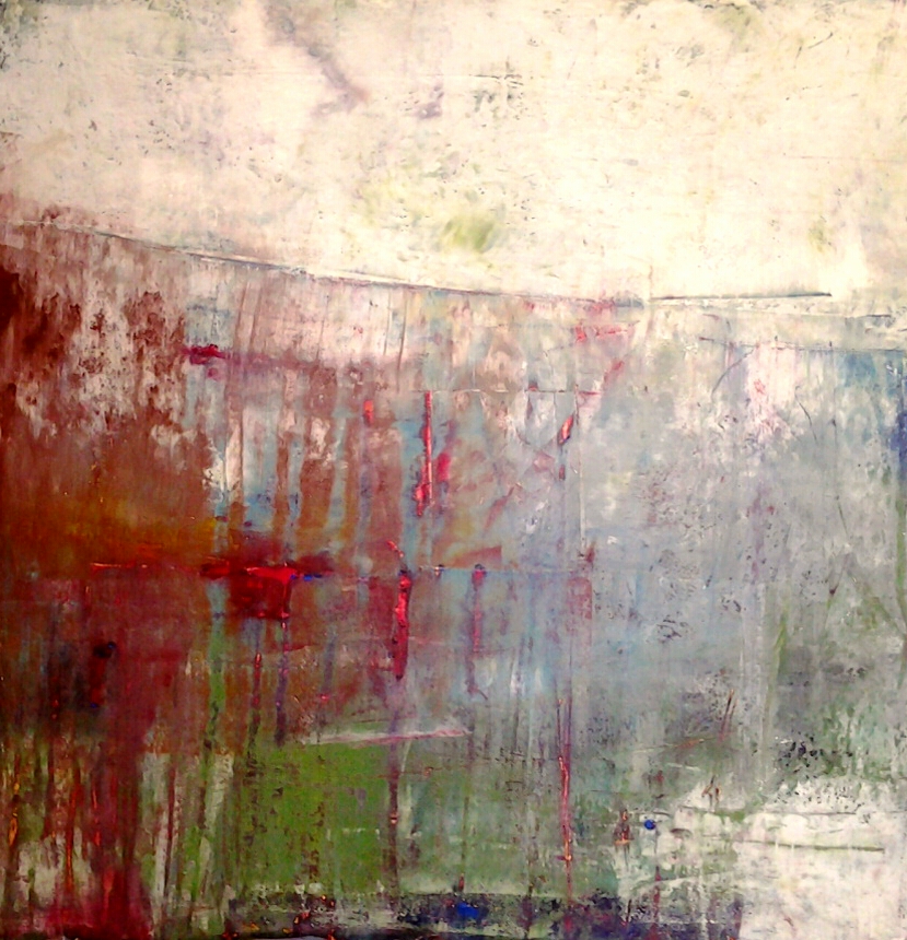 3 layers, wet on wet, of contrasting colours, oil and cold wax medium