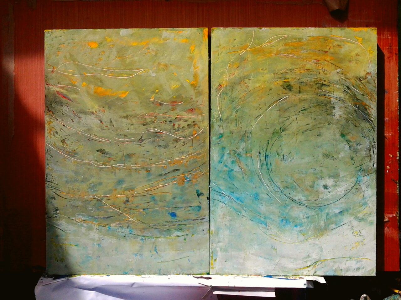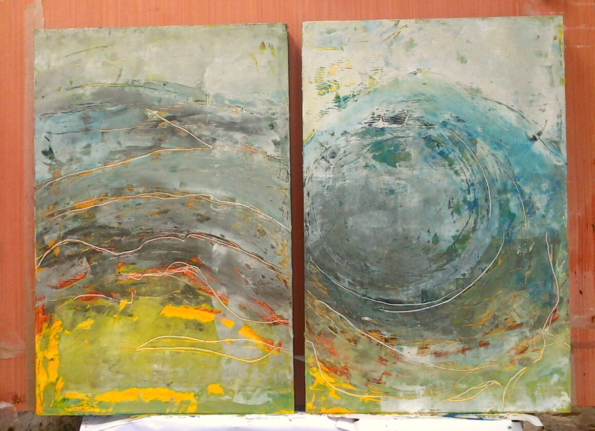 The offer is to buy one of these two big pieces shown above (‘Tide’ and ‘Breathe’) at a special reduced seasonal price, and receive TWO of these smaller works below FREE as a gift and a thank you from us to you 🎄