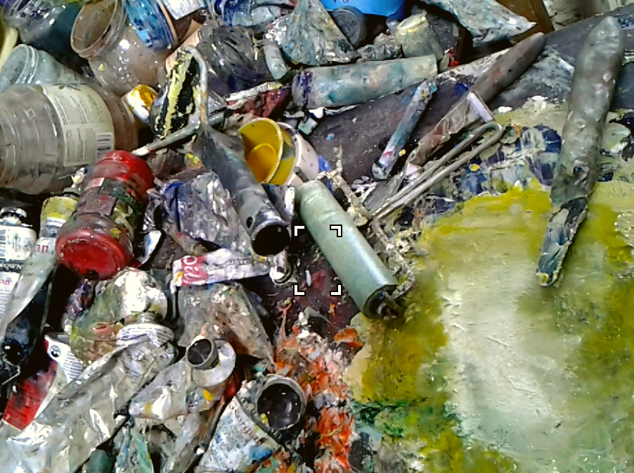 Spray paint!! The mask photo was from a couple of years ago when I was experimenting with masking tape and aerosol cans 🙂 I still sometimes use a mask if I’m using a heavy amount of powder pigment and there’s a lot in the air